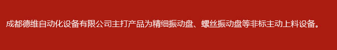 成都德維自動(dòng)化設(shè)備有限公司是一家專(zhuān)業(yè)生產(chǎn)振動(dòng)盤(pán)的企業(yè),成立于2017年3月,位于成都市郫都區(qū)現(xiàn)代工業(yè)港南區(qū)和聚工業(yè)園2459號(hào),注冊(cè)資金100萬(wàn),現(xiàn)有員工20余人。公司主打產(chǎn)品為精細(xì)振動(dòng)盤(pán)、螺絲振動(dòng)盤(pán)等非標(biāo)主動(dòng)上料設(shè)備,商品包含:各種主動(dòng)拼裝設(shè)備、電子零件加工設(shè)備,電子元器件及五金小零件主動(dòng)上料振動(dòng)盤(pán)系列以及與之配套運(yùn)用的主動(dòng)送料倉(cāng)、直線(xiàn)送料器、控制器、振動(dòng)渠道、垂直振動(dòng)器系列及非標(biāo)自動(dòng)化設(shè)備等,廣泛應(yīng)用于電子、五金、塑膠、連接器、醫(yī)療器械、醫(yī)藥、日常用品的制造等各個(gè)行業(yè),是解決工業(yè)自動(dòng)化設(shè)備供料的必須設(shè)備。 |